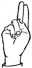 На ћирилици написано БРАНИСЛАВ ВУЈАЧИЋ састоји се из 16 слова [?]. Исписано ћириличном једноручном азбуком за глувонеме: